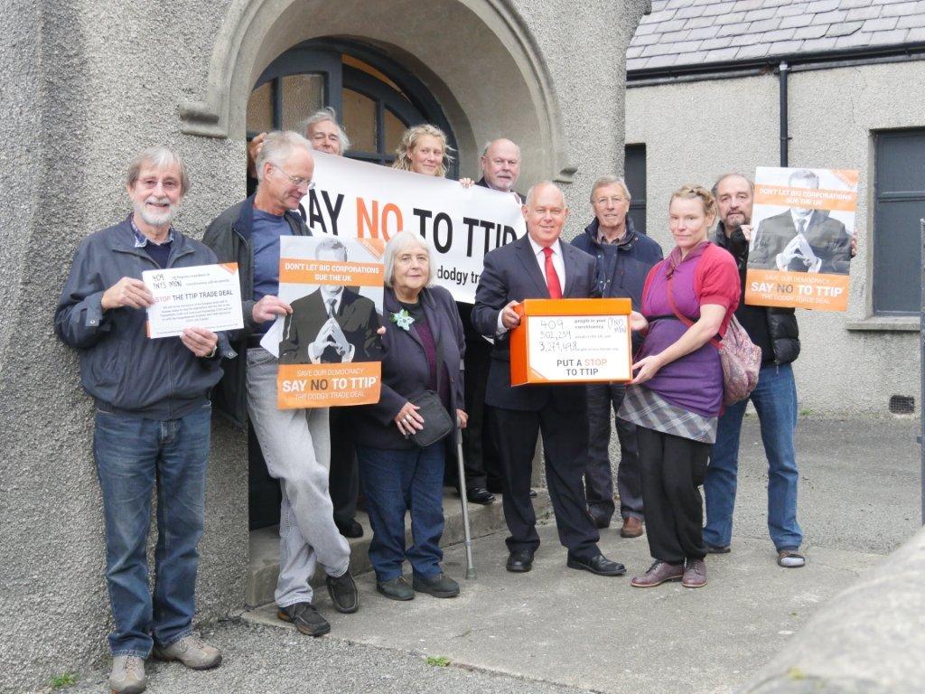 The petition hand-in that we did on Ynys Mon (Anglesey) constituency was really exiting. I found it very empowering collecting the signatures in September, as part of 38 degress’ TTIP day of action. I have never met with my MP, but this is an issue that affects us all, and I feel happy that I have done something.