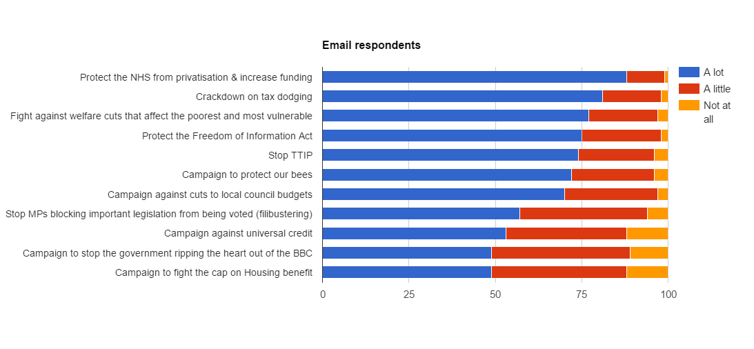 As members of 38 Degrees, each one of us helps decide the issues we work on together to make change happen. Knowing what all of us care about is vital.