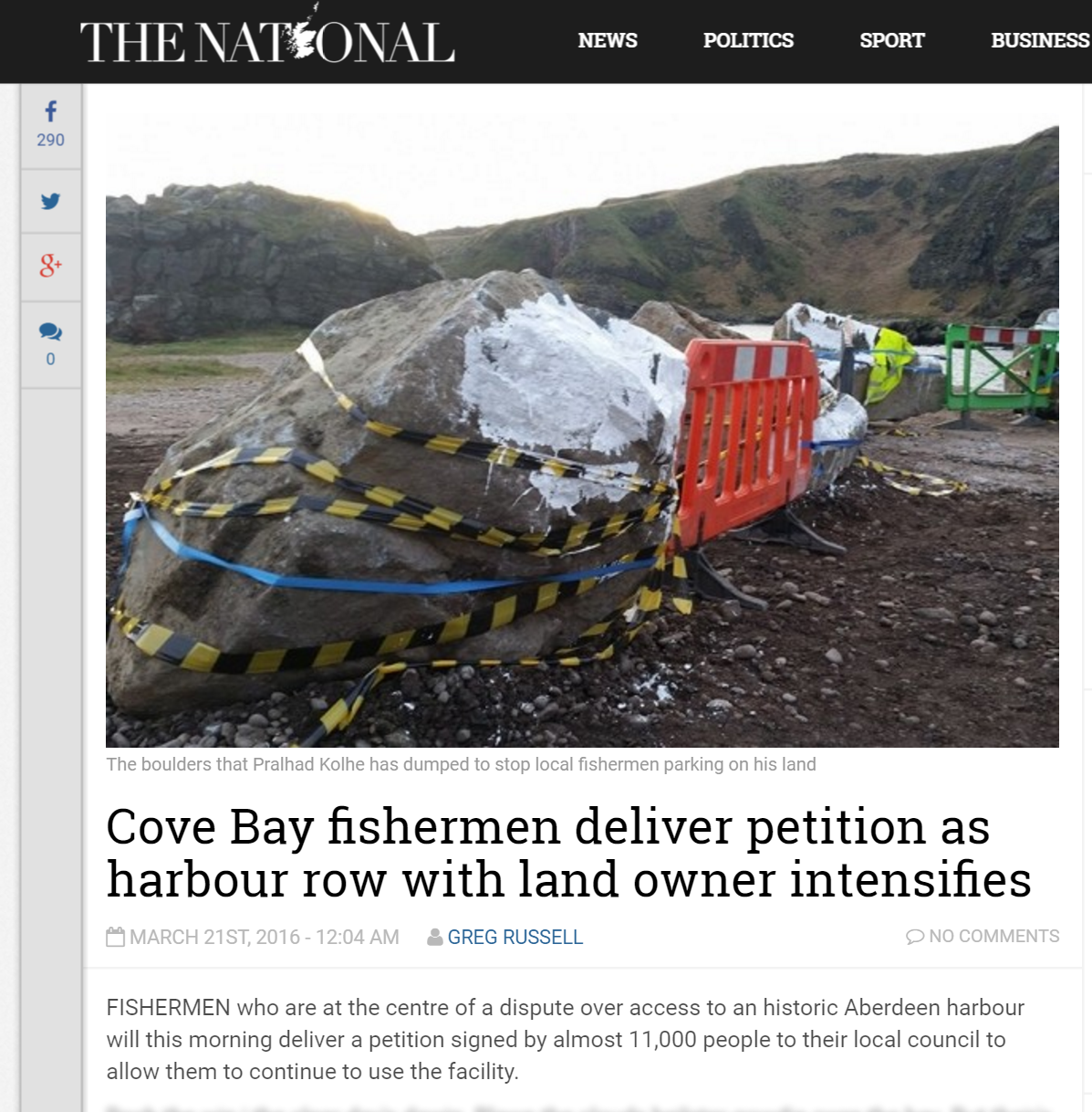 Cove piece in The National