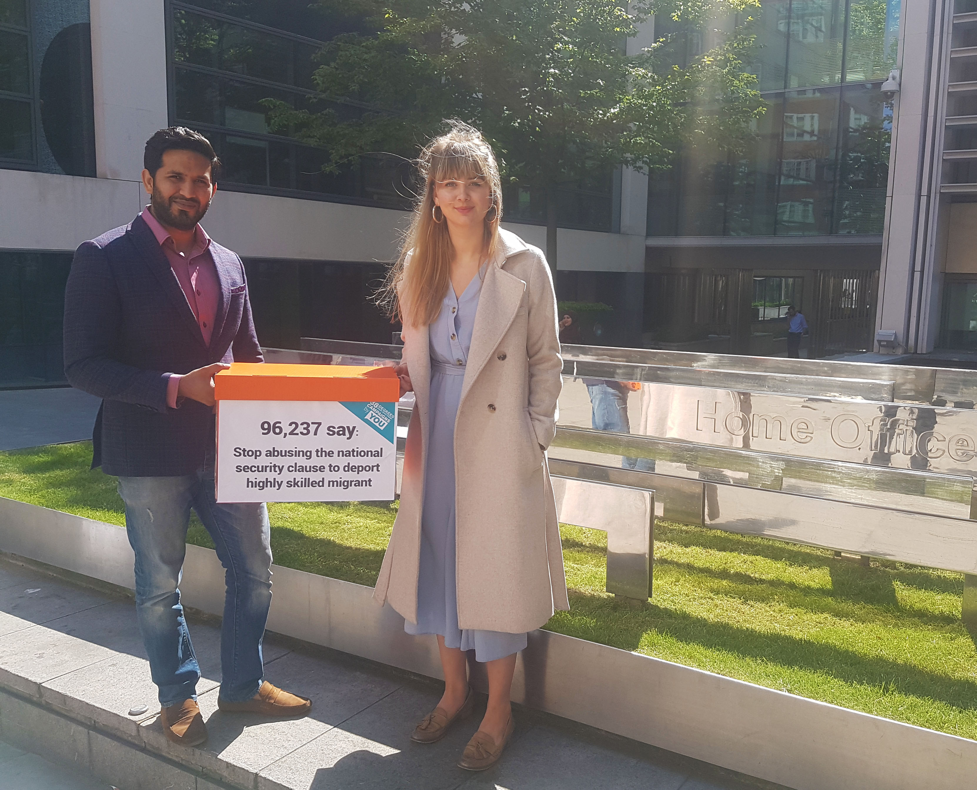 On Monday 11th June, Tahir from ‘Highly Skilled Migrants UK’ and Molly and David from the 38 Degrees staff team delivered the petition to the Home Office, urging them to make sure the doctors, scientists, and other skilled migrants our country relies on, are treated fairly.