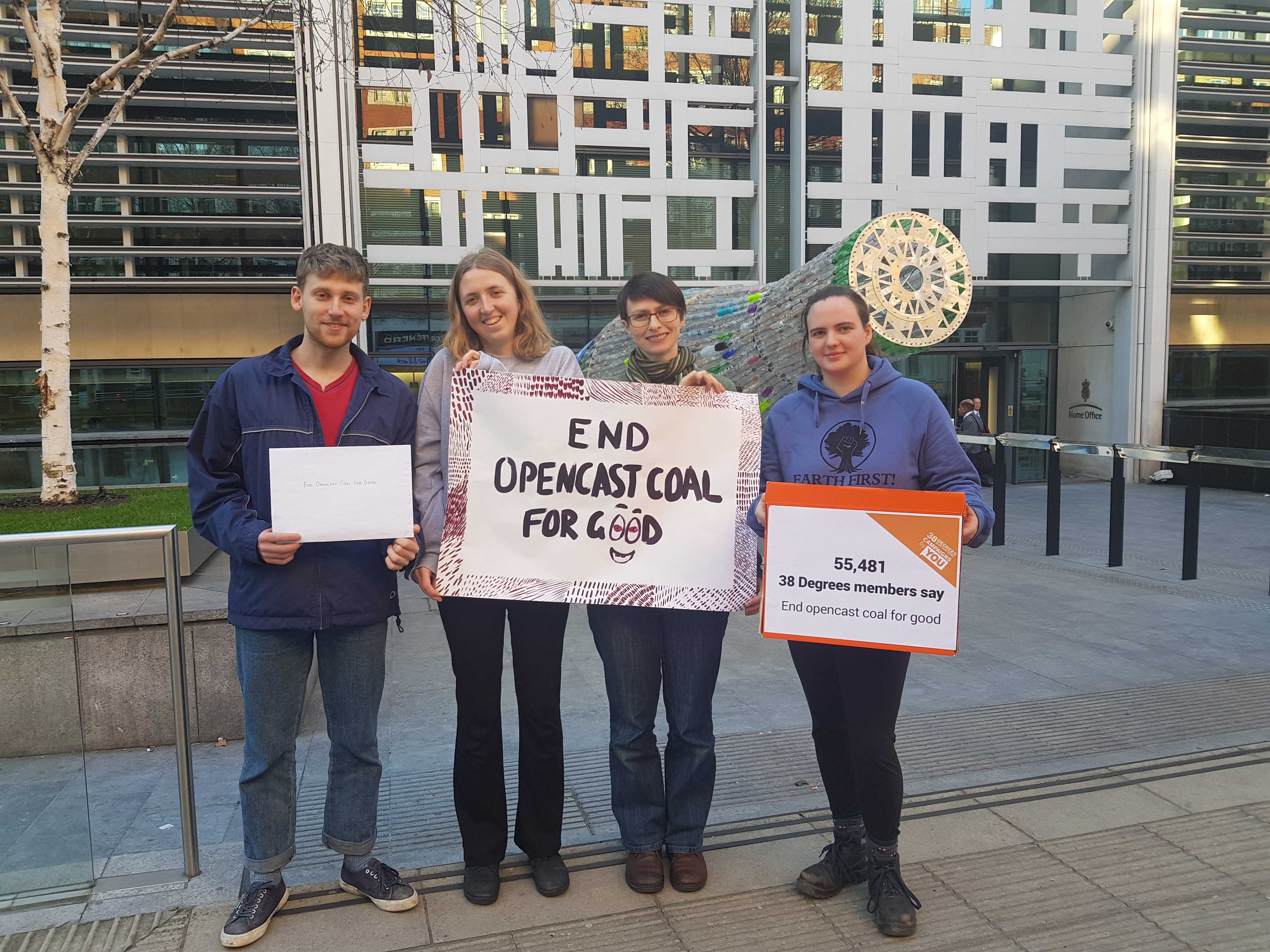 Yesterday members from the Coal Action Network travelled to Westminster to hand in a petition signed by 55,000 members of 38 Degrees to James Brokenshire MP, Secretary of State for Housing, Communities and Local Government.