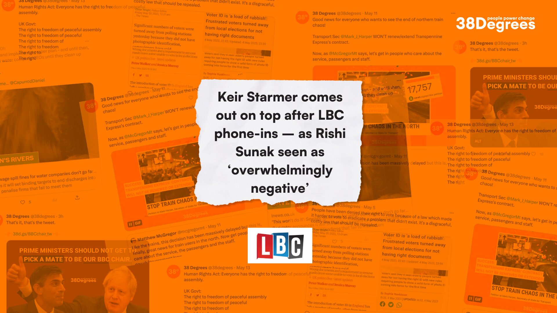 Our new 38 Degrees research was conducted immediately after the discussion hosted by Nick Ferrari on Tuesday, with pollsters JL Partners using a pioneering update to traditional snap polling to get same-day qualitatively reactions to breaking news. In the study, voters were shown clips of the Conservative and Labour party leaders answering questions on key issues like the cost of living and NHS waiting lists.