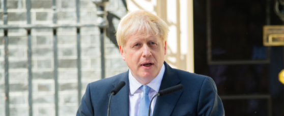 Image shows Boris Johnson outside of a BBC building.